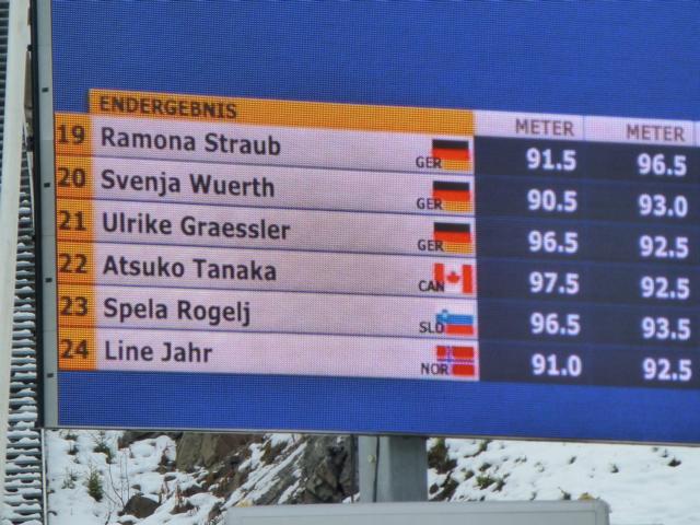 Überragende Gewinnerin des heutigen Wettkampfs war erneut Sara Takanashi die zwei geniale Spünge über 100m setzte.