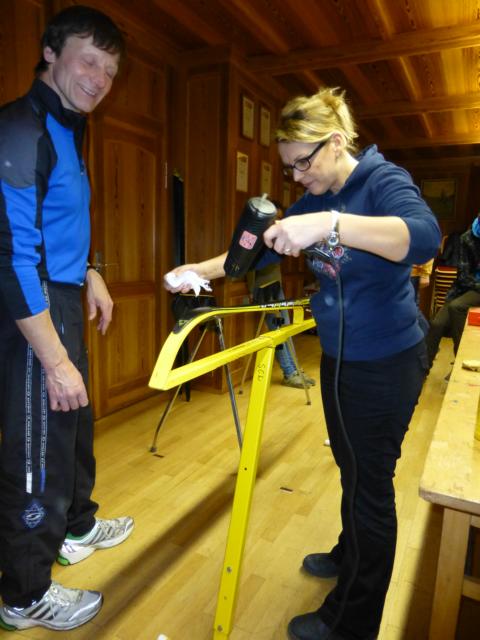Er zeigte uns, wie wir unsere Skier richtig reinigen, und danach wieder für die Wettkämpfe entsprechend vorbereiten können.