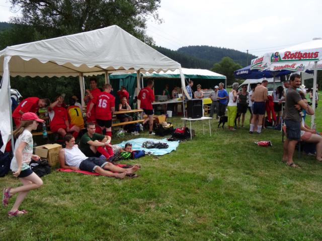 Damit unsere Fußballer auf dem Platz nicht überhitzten, war es uns ein Anliegen, den Mannschaften gratis Mineralwasser zu spendieren. Doch nach der Vorrunde kam´s dann ganz anderst, denn es setzte unwetterartiger Regen ein, der alle nicht nur kühlte, sondern durch und durch ein nässte.