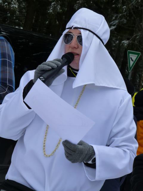 Nach dem Staffellauf ging´s in unseren närrisch dekorierten SCL-Schopf wo Franz und die Helfer-Crew mit leckeren Sachen auf uns wartete. Bei der Siegerehrung gab´s dann für alle Teilnehmer Urkunden und Preise und mit Spannung wurde natürlich die Kostümprämierung erwartet. Der Jury fiel die Entscheidung diesmal wieder besonders schwer, so dass kurzfristig noch zwei Zusatzpreise organisiert wurden. Den Seriensiegern (diesmal als "Die-Adligen angetreten) war es ein Anliegen ihren Preis eines Badeparadies-Gutscheins an die tolle Staffel von Ramona´s-Fan-Club weiter zu geben.