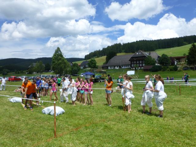 Das Orga-Team mit Anika Schlegel und Sarah Faller an der Spitze haben sich wieder tolle und bis ins Detail geplante Stationen überlegt und die Wiese vom Binsenhof in ein schönes "Olympia"-Stadion verwandelt.