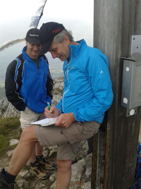 Nach einem Eintrag ins Gipfelbuch geht es wieder abwärts. Auf der