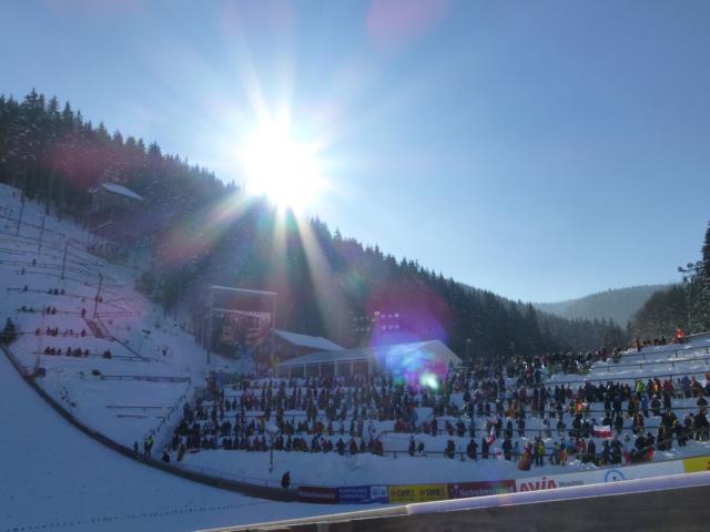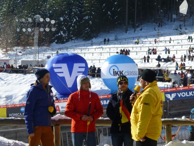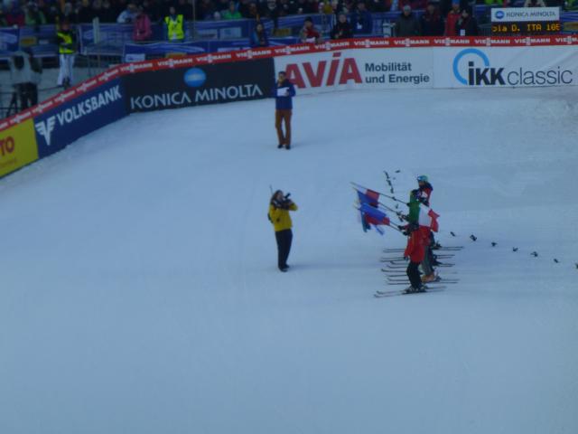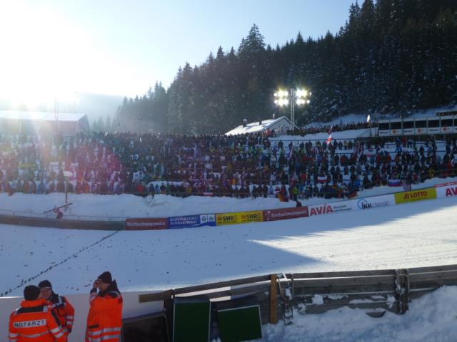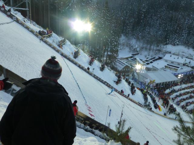 Die Atmosphäre im Stadion bei diesem herrlichen Wetter war wirklich beeindruckend und Entschädigung für manchen Stress in den vergangenen Tagen. Als dann auch noch Severin Freund den ersten Wettkampftag gewonnen hatte, war die Welt in Ordnung.