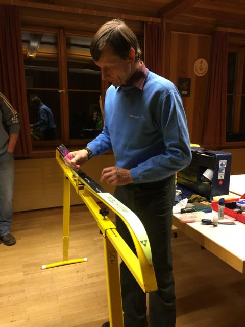 Er zeigte uns, wie wir unsere Skier richtig reinigen, und danach wieder für die Wettkämpfe entsprechend vorbereiten können. Es ist schon beeindruckend, wie viele Wachsarten und Zubehör für das Herrichten eines optimalen Rennskis erforderlich ist.
