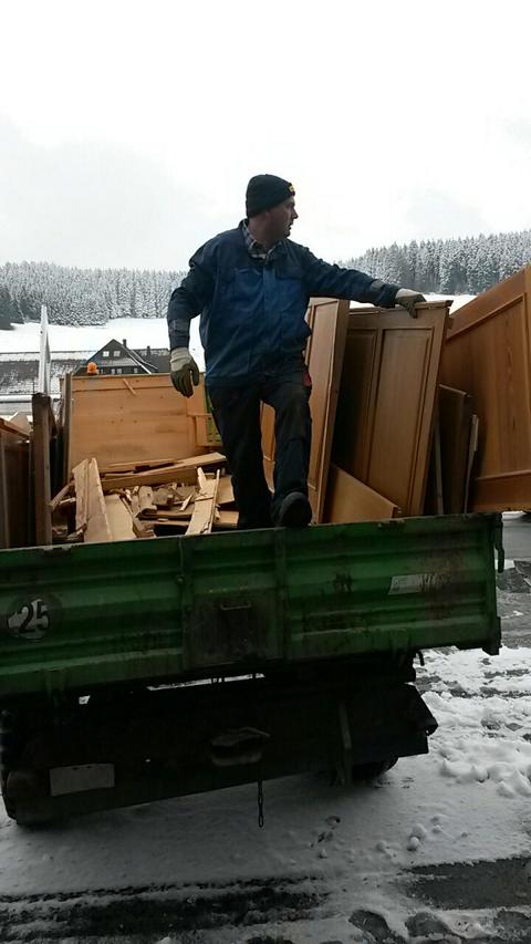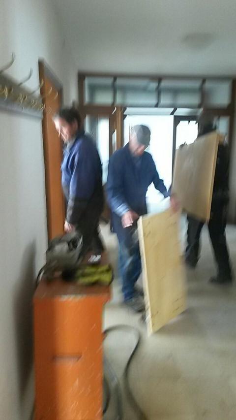 Mit viel Elan und grobem Werkzeug ging es den Innereien der ehem. Amts-, Büro- und Archivräumen an den Kragen. Alles wurde fachgerecht auf verschiedene Anhänger sortiert und bald waren die Räume in einem rohbauähnlichen Zustand.