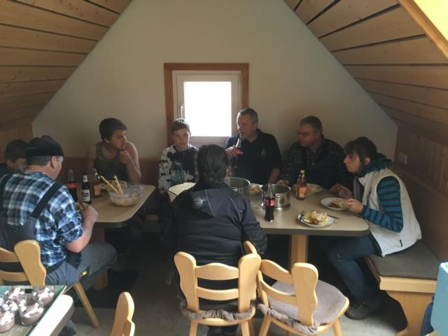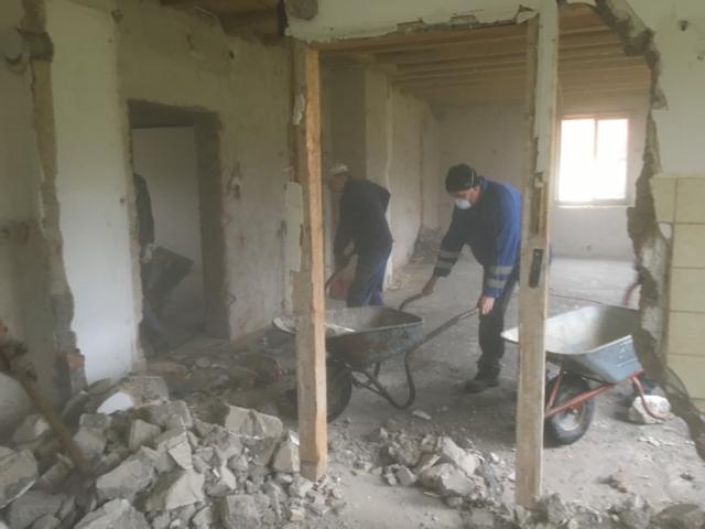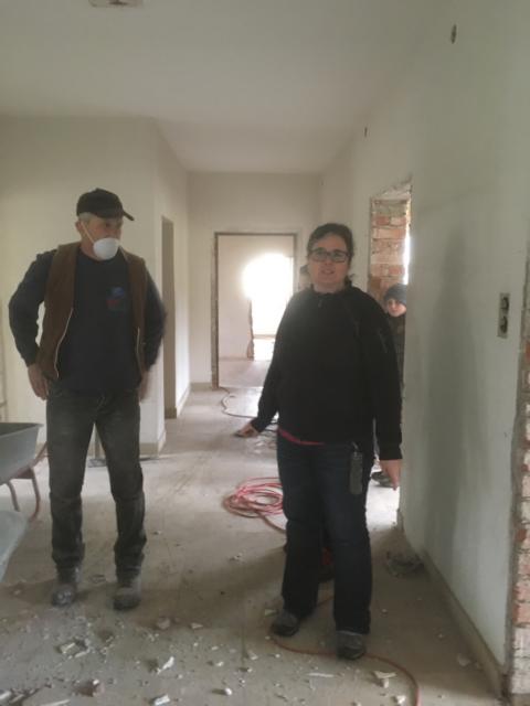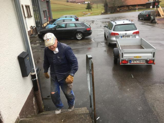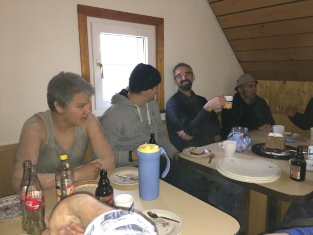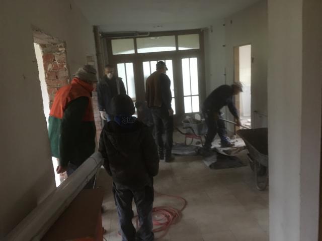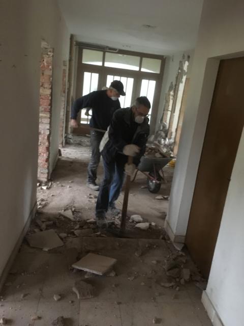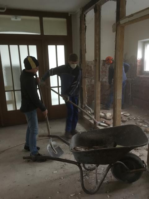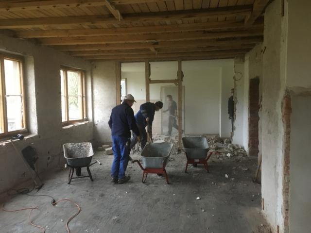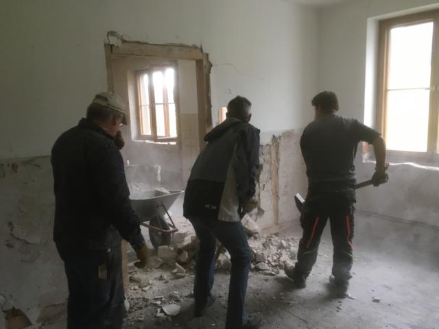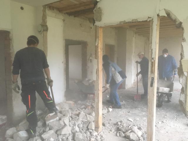 Für diese Arbeiten war grobes Werkzeug, wie Hammer, Pickel, Hilti aber auch viel Muskelkraft, gefordert. Zum Glück hatte Hansjörg Staubmasken besorgt, welche Gold wert waren. Am Ende des Tages wurden von den Helfern 3 große Anhänger mit Schubkarren gefüllt. Alle waren mit dem Ergebnis ihrer Arbeit sehr zufrieden und hatten Dank der leckeren Verkostung duch Sigrid und Christa viel Spaß.