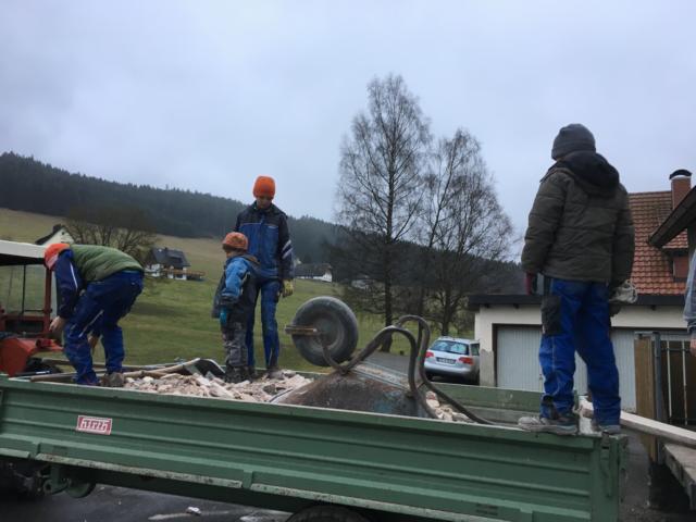 Heute waren auch viel sehr junge Langenordnacher auf der Baustelle und beteiligten sich mit sehr viel Spaß an der Gestaltung des zukunftigen Mittelpunkt des Dorflebens in Langenordnach. Auch heute gab es wieder manchen Anhänger mit Schutt, welchen wir unter anderm im RAZ entsorgt haben.