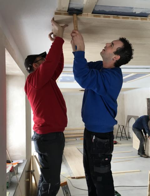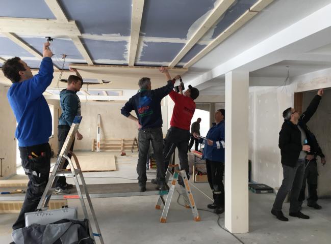 Am am heutigen Samstag, den 3.3.2018 und den vergangenen Wochen wurde unter der Federführung von Markus Faller die neue Akkustikdecke in unserem zukünftigen Bürgerhaus montiert. Mit viel Geschick und Können waren wieder zahlreiche ehrenamtliche Helfer auf der Baustelle. Nachdem wir im vergangenen Wochenende mit dem Kinderskifest den Rohbau schon eingeweihen konnten, ist die Motivation, unser Gemeinschaftswerk zum Ende zu bringen noch mehr gestiegen.