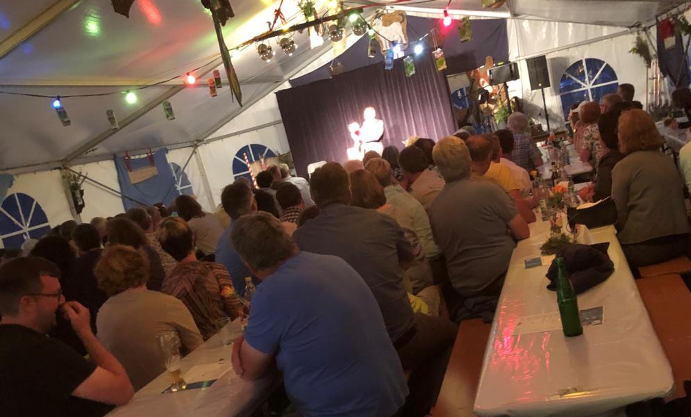 Auch wenn mit "Neustadt hockt und rockt" eine weitere Veranstaltung in unserer Gemeinde war, durften wir uns über ein gut gefülltes Festzelt freuen. Michael Parléz brachte uns mit Zauberkünsten und Wortspielen in seinen Bann und hielt was die Einladung versprach.
