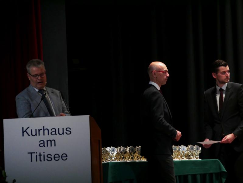 Mit einem abwechslungsreichen Programm lud die Arbeitsgemeinschaft der 20 sporttreibenden Vereine in Titisee-Neustadt, am 16.11.2019 zum diesjährigen Abend des Sports in das Kurhaus Titisee ein. In diesem Jahr ist unser Vorstand Andreas Heizmann ARGE-Vorsitzender und freute sich einen gut gefüllten Saal begrüssen zu dürfen. Zahlreiche Sportbegeisterte aus Titisee-Neustadt und auch unseres Skiclubs sind ins Kurhaus gekommen, um die Leistungen der Sportler zu würdigen. Einen ihrer ersten öffentlichen Auftritte hatte Neubürgermeisterin Meike Folkerts, die als ehem. Leistungssportlerin die richtigen Worte für ihre Ansprache fand.