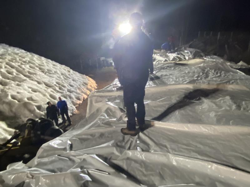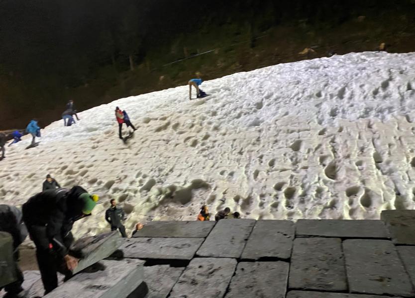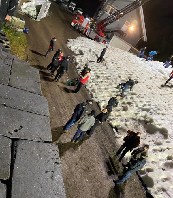 Am Donnerstagabend, den 01.12.2022 hat das Schanzenteam wieder einen Helferaufruf an alle beim Weltcup beteiligten Vereine gestartet, um den für den kommenden Weltcup produzierten Schnee aus seinem Sommerquartier auszupacken. Zahlreiche Helfer sind dem Aufruf gefolgt und haben sich nach Feierabend zum Orgagebäude an der Schanze neben unserem Schützenhaus aufgemacht. nter Anleitung von OK-Chef Joachim Häfker und Beleuchtung durch die Feuerwehr Neustadt ging´s an die Arbeit.