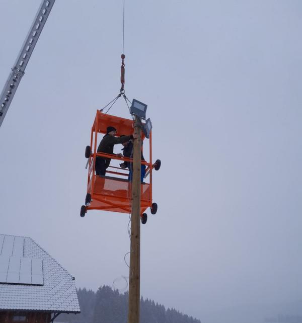 Am heutigen Samstag, den 10.12.2022 haben unser Florian Wursthorn gemeinsam mit Christian Walter und Malte Walter, sowie Chris Faller und Mario Wursthorn die Instandhaltung unserer Ornemer Langlauf Flutlichtanlage vorgenommen. Es wurden die Strahler die an das Obere Wirtshaus und an den Fallerhof angebunden sind mit neuen LED Energiesparlampen von Elektro Willmann ausgestattet.