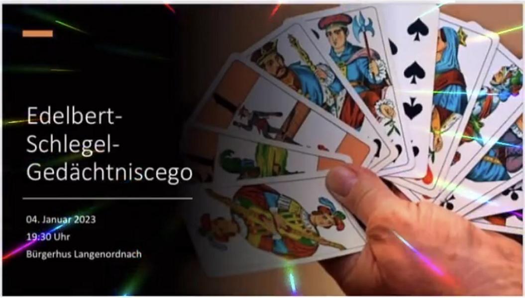 In das Leben gerufen, wurde dieser CEGO-Abend zur Erinnerung an Edelbert Schlegel, den Vater von Hubert und Hermann Schlegel, der über viele viele Jahre ein treuer Gönner und Helfer des Skiclub Langenordnachs war, und der für sein Leben gerne Cego spielte.