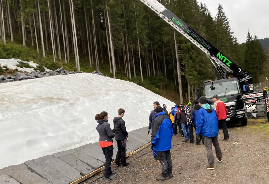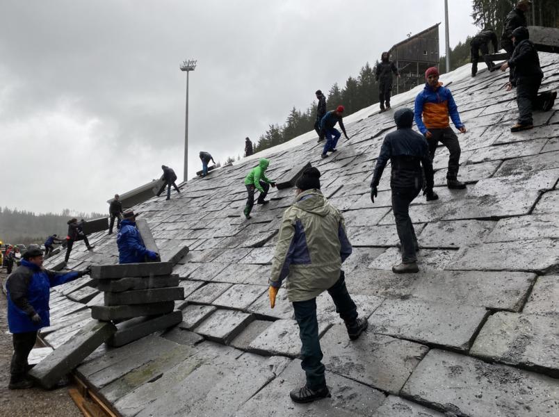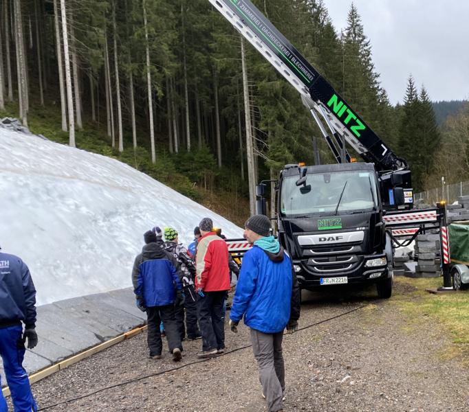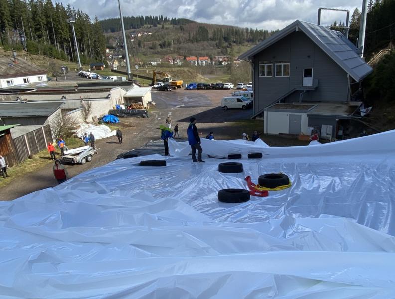 Für den heutigen Samstag, den 23.04.2023 hat das Schanzenteam und die Stadt Titisee-Neustadt wieder einen Helferaufruf an alle beim Weltcup beteiligten Vereine gestartet, um den für den kommenden Weltcup produzierten Schneeberg über den Sommer zu konservieren. Zahlreiche Helfer sind dem Aufruf gefolgt und haben sich in der Frühe zum Orgagebäude an der Schanze aufgemacht..