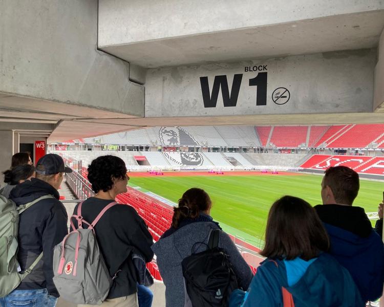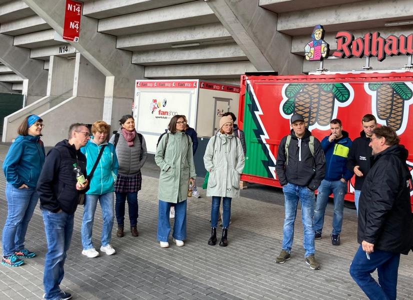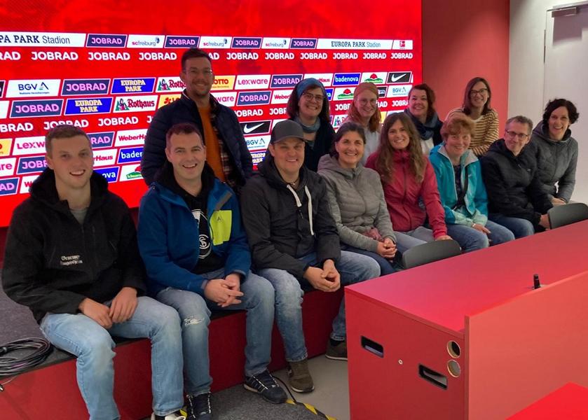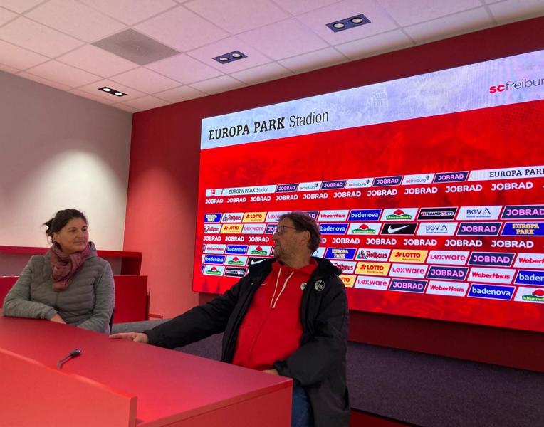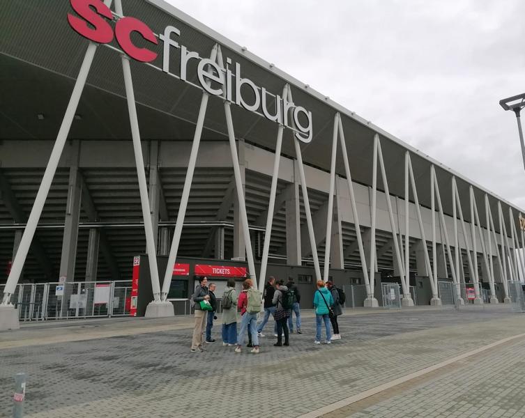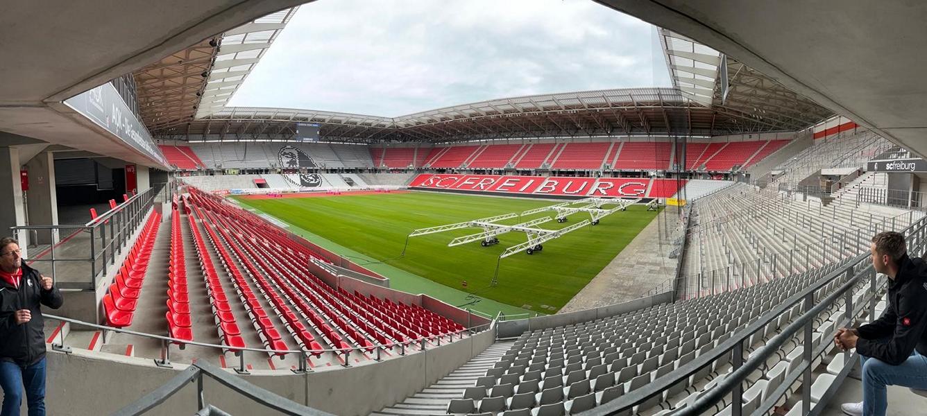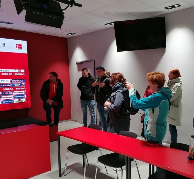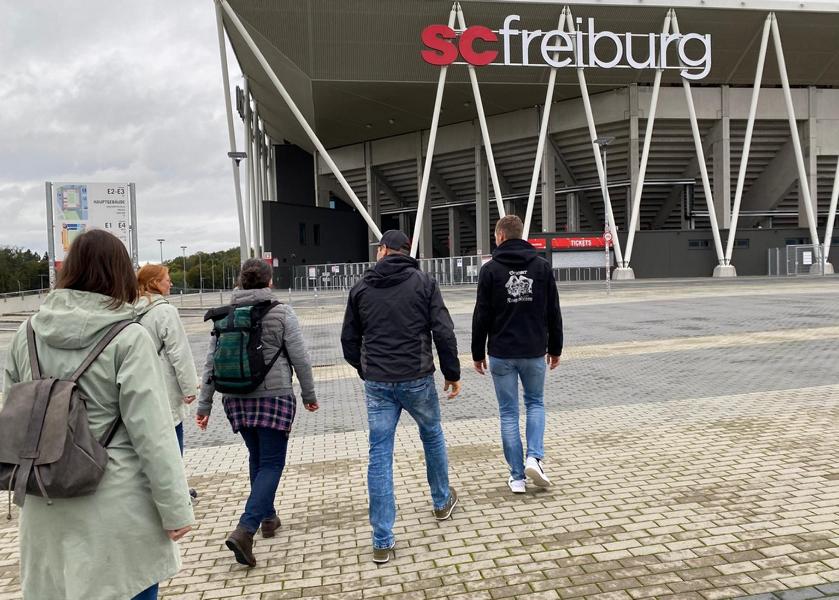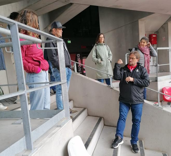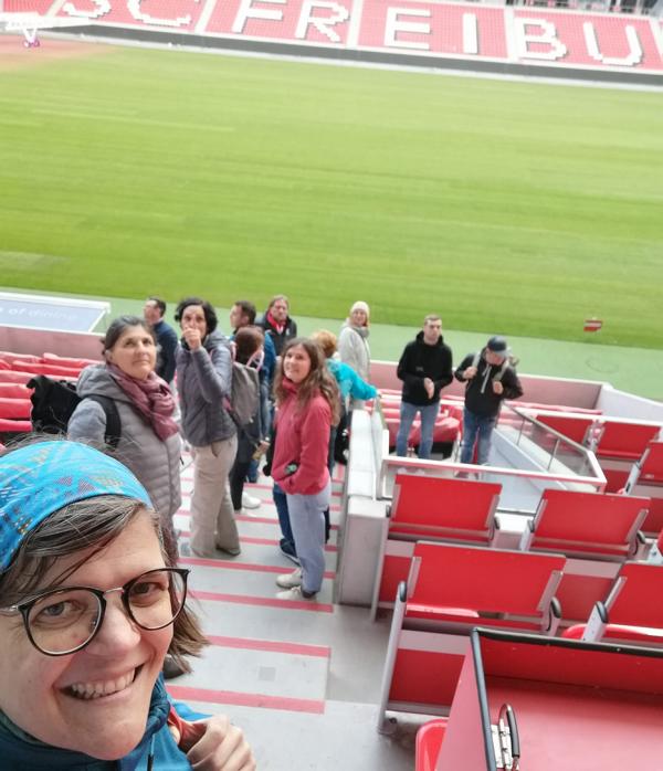 Auf der Fahrt nach Freiburg wurde es heller und trockener! Im Europaparkstadion angekommen hat uns Gerd auf eine Reise durch das SC-Stadion mitgenommen und er wusste einiges in aller Ausführlichkeit zu erzählen und zu sagen.