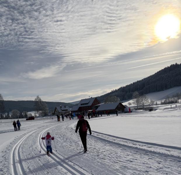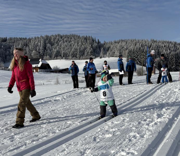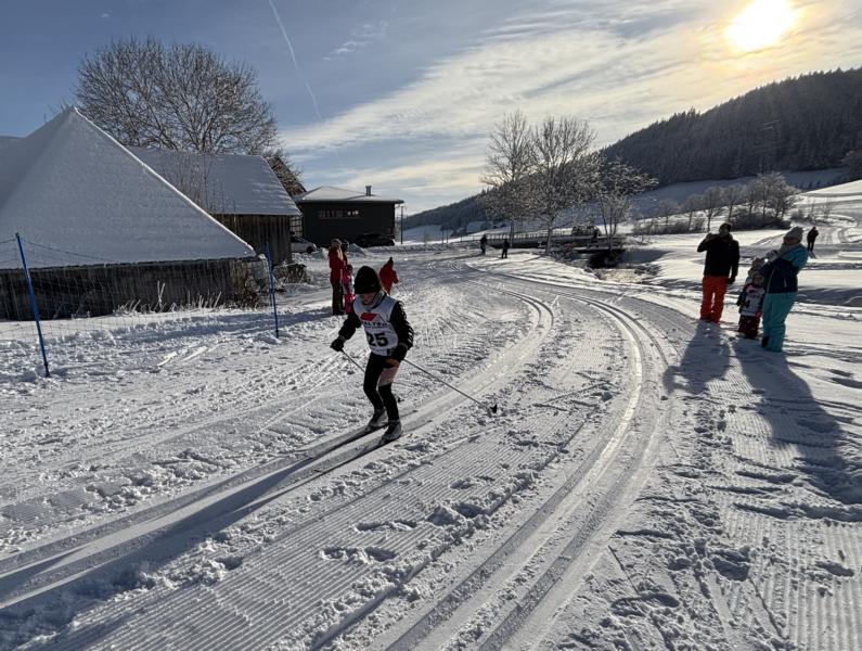 Am Nachmittag trafen wir uns dann an unserer Heimstrecke am SCL-Schopf, wo wir den Langlaufwettbewerb durchführten. Unser neuer Streckenchef Jonas Faller schuf beste Bedingungen für unseren Nachwuchs. Schön zu sehen, mit welcher Freude sich die Kleinsten auf die Strecke begaben. Angefeuert wurden die Sportler von Roland Hensler am Mikrofon sowie vielen "Fans" an der Strecke.