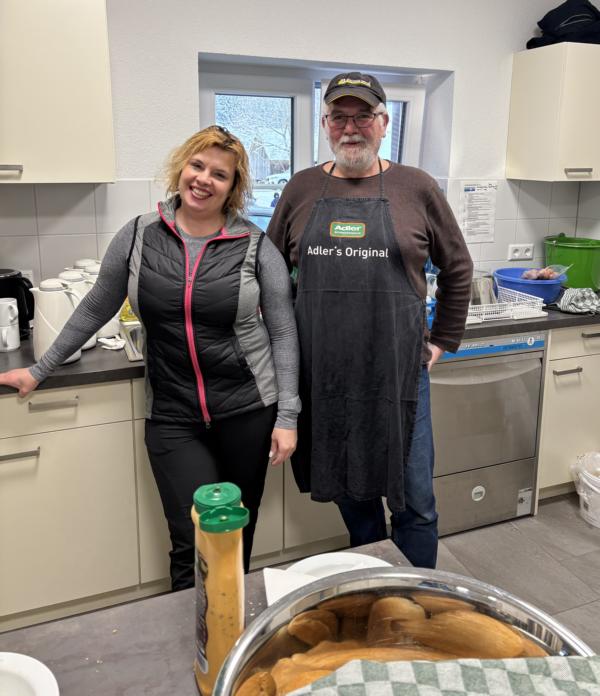 Über den Mittag gab´s dann im Bürgerhaus leckere Grillwürste und Maultauschen.