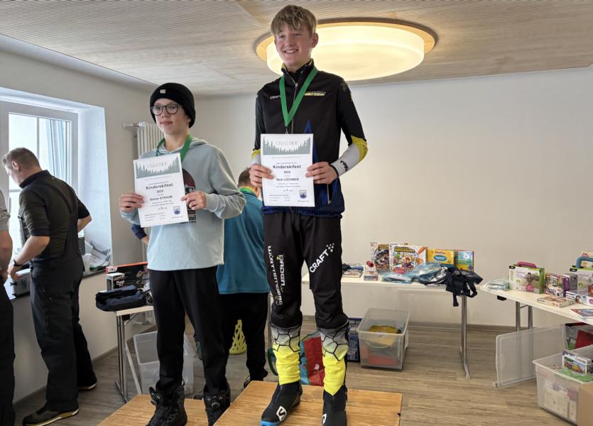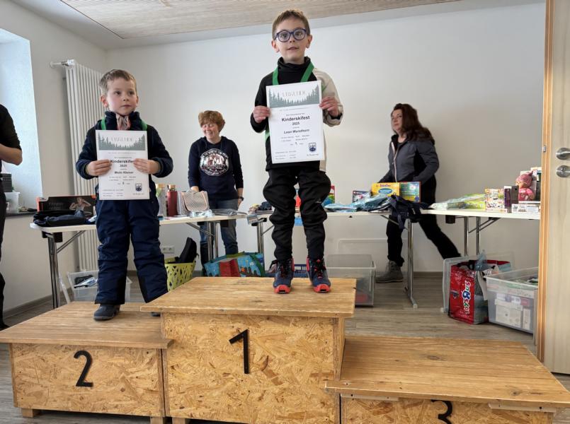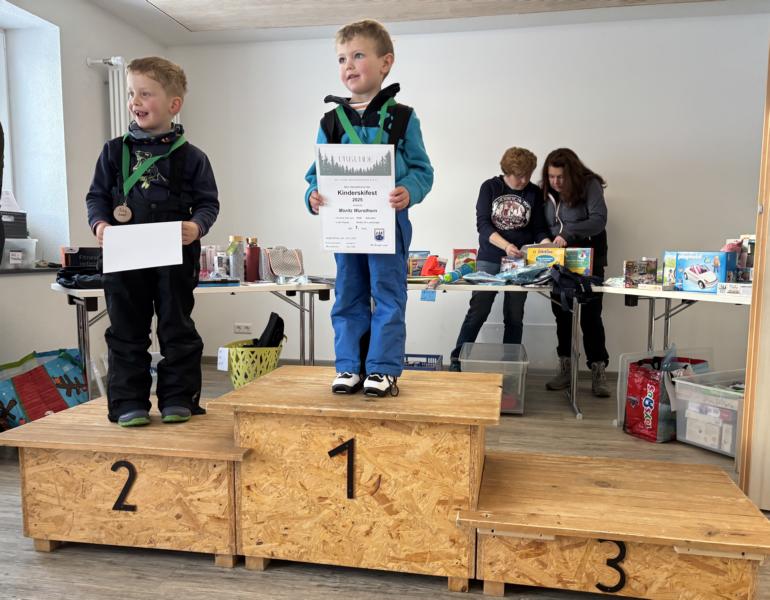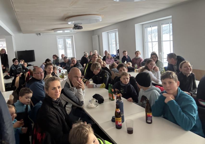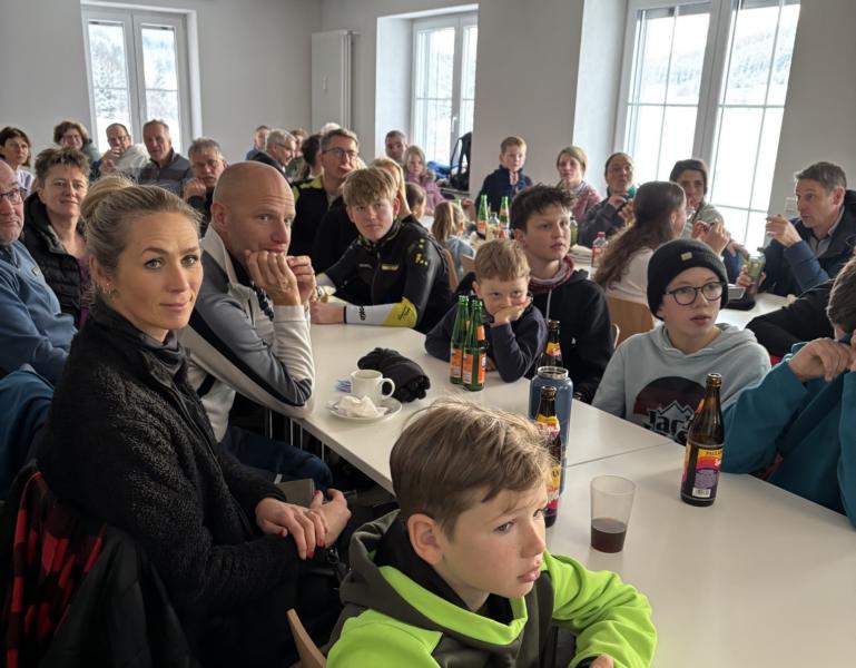 Nach dem Langlauf durften sich alle nochmals mit Bürgerhaus stärken und gespannt auf die Siegerehrung warten. Die Siegerehrung wurde dann gekonnt von Roland Hensler moderiert. Aus den Händen unseres Vorstands Florian und Sportwarts Jonas erhielten die Kinder dann Urkunden, Medaillen und wie gewohnt auf liebevoll gerichteten Gabentischen wertvolle Sachpreise. Da unser aktuelles Aushängeschild Robin Faller aufgrund der Teilnahme beim Deutschlandpokal nicht dabei sein konnte, haben wir einfach seine Wertung von Deutschlandpokal genommen und in damit in die Siegerehrung integriert.