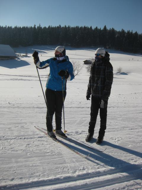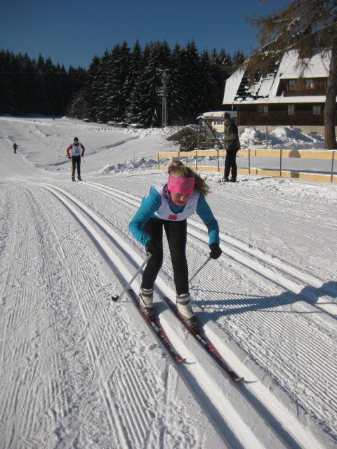 Bei fast minus 20°C mussten die Langläufer auf die Strecke, was gerade für die kleinsten Teilnehmer schon eine grenzwertige Aufgabe war. Netterweise haben uns die Schonacher die Umkleide-Container des Weltcups geöffnet und auch noch beheizt, so dass die Läufer sich aufwärmen konnten und die Wachser es auch einfacher hatten.