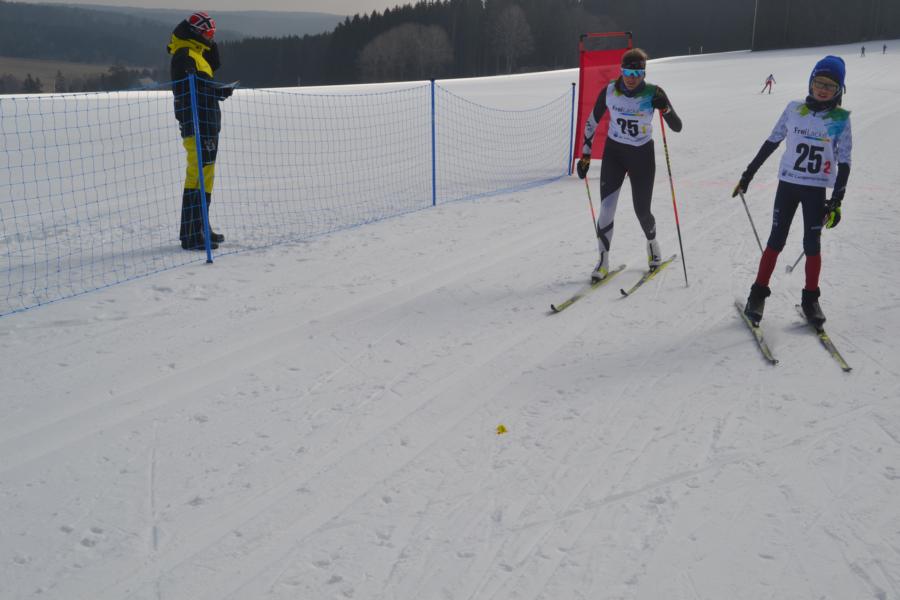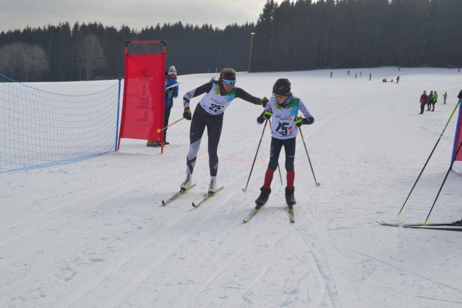 Die 8 Teams in der Klasse U8-U11 männlich, 6 Teams der Klasse U8-U11 weiblich, 7 Teams der Klasse U12-U15 Jungen und 4 Teams der Klasse U12-U15 Mädchen lieferten sich in den einzelnen Teilstrecken packende aber faire Fights. Die 900m Strecke galt es abwechselnd in der klassischen und in der freien Technik zu bewältigen.