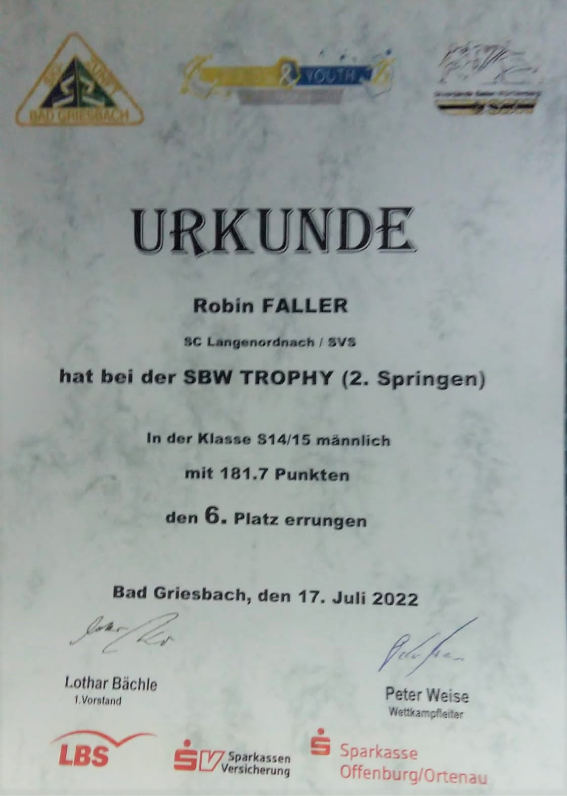 Wir gratulieren Robin für seine tollen Sprünge und danken den Betreuern für die Unterstützung.