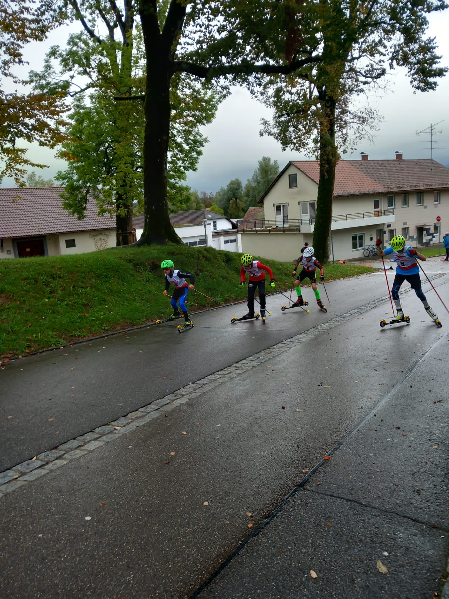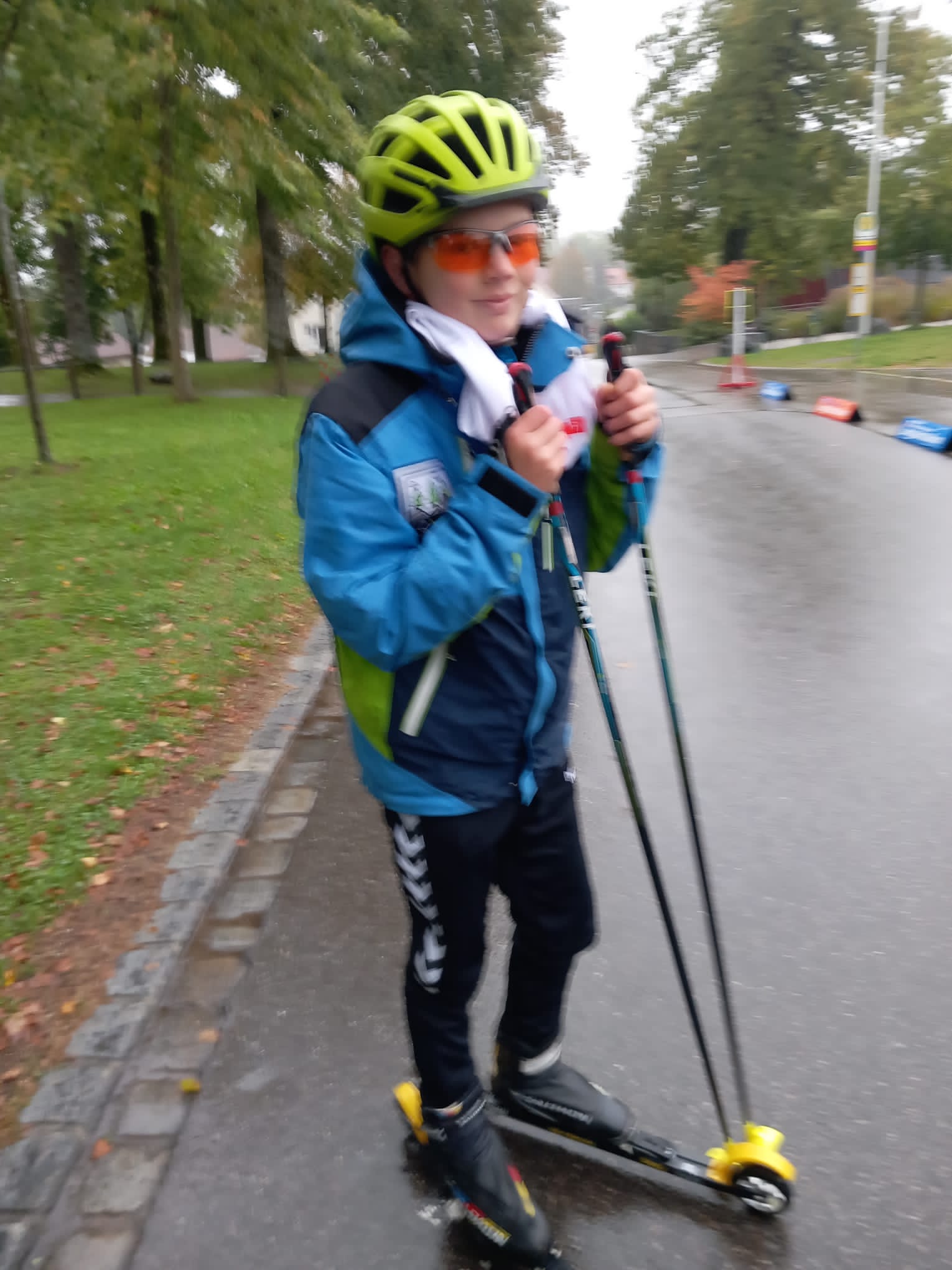 Am Sonntag sah es dann wieder besser aus. Das Wetter war auch fast trocken u für kurze Momente kam sogar die Sonne raus. Nur kurz vorm Skirollern schüttete es dann nochmal kurz u kräftig aber pünktlich zum Start war es dann trocken. Robin sprang auf der K 60 auf 58 und 56,5 Meter u ergatterte sich somit den 13. Platz. In der Kombi wurde er dann 11.