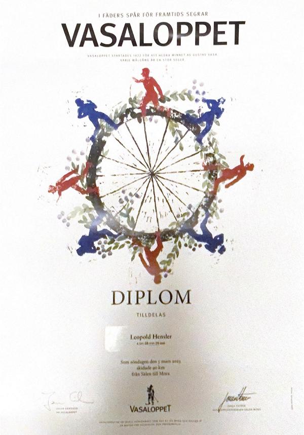 Ab Kilometer 60 ging es bei mir dann schwerer. Die Energie war weg. Der Auftrag an mich hieß also auf den Ski stehen bleiben und ins Ziel kommen. Das hat auch gut funktioniert und ich überquerte die Ziellinie in Mora nach 90 km mit einer Zeit von 4:58:29. Das bescherte mir mit dem 975. Platz (gesamt) einen Platz unter den besten 1.000 von 16.000 Startern. Peter ist mit seiner Zeit von 4:53:04 auf einem tollen 856. Platz (gesamt) gelandet. Peter und ich sind uns, trotz so vielen Leuten zweimal begegnet und konnten eine kleines Schwätzchen halten, wie es dem anderen denn so geht. Das hat sich vom ersten Mal nach sieben km bis km 60 etwas verändert.