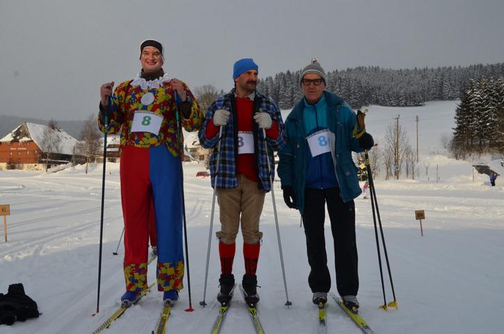 Nach dem Staffellauf trafen wir uns alle zur Siegerehrung im SCL-Schopf. Alle Mannschaften erhielten Urkunden und Preise, sowie die schönsten Kostüme wurden prämiert. Auf das eigens für die Siegerehrung aufgebaute Schneepodest, durften die Siegermannschaften des Staffellrennes, als auch die Gewinner der Kostümprämierung.