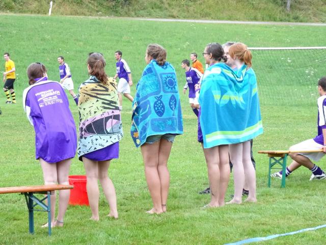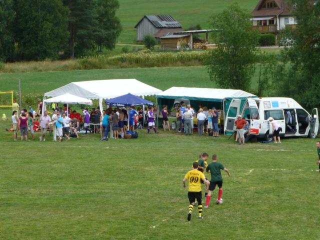 Damit unsere Fußballer auf dem Platz nicht überhitzten, war es uns ein Anliegen, den Mannschaften gratis Mineralwasser zu spendieren. Doch nach der Vorrunde kam´s dann ganz anderst, denn es setzte unwetterartiger Regen ein, der alle nicht nur kühlte, sondern durch und durch ein nässte.