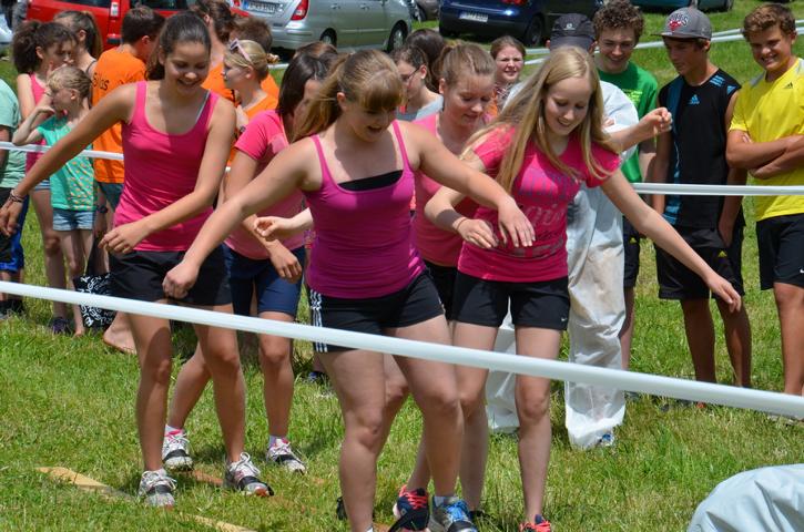 Das Orga-Team mit Anika Schlegel und Sarah Faller an der Spitze haben sich wieder tolle und bis ins Detail geplante Stationen überlegt und die Wiese vom Binsenhof in ein schönes "Olympia"-Stadion verwandelt.