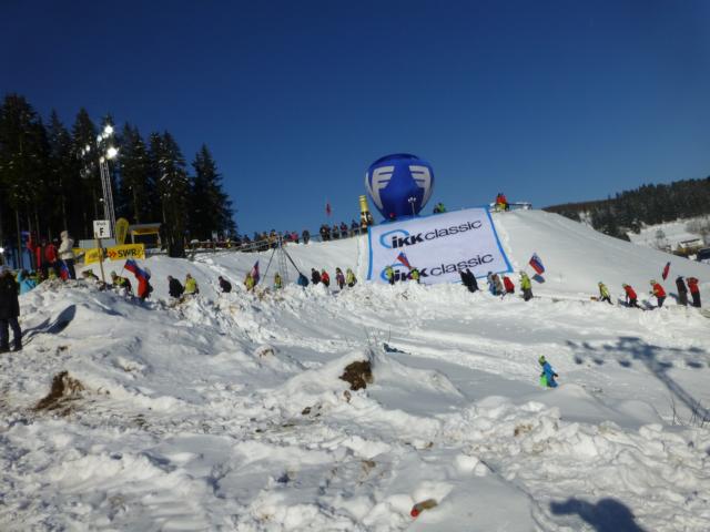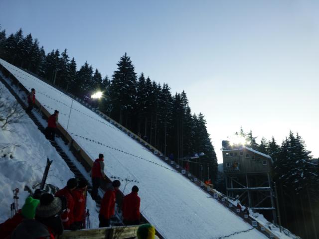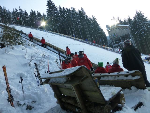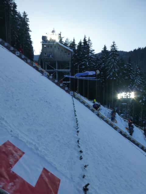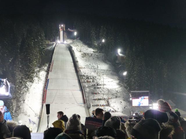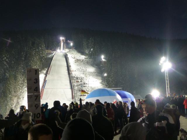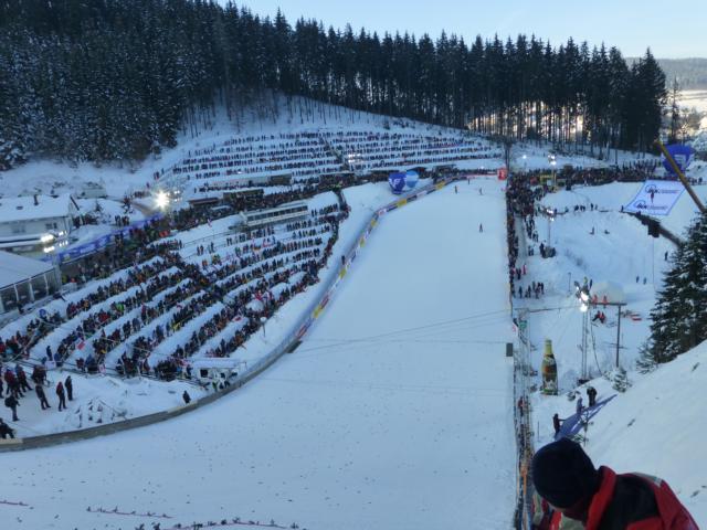 Die Atmosphäre im Stadion bei diesem herrlichen Wetter war wirklich beeindruckend und Entschädigung für manchen Stress in den vergangenen Tagen. Als dann auch noch Severin Freund den ersten Wettkampftag gewonnen hatte, war die Welt in Ordnung.