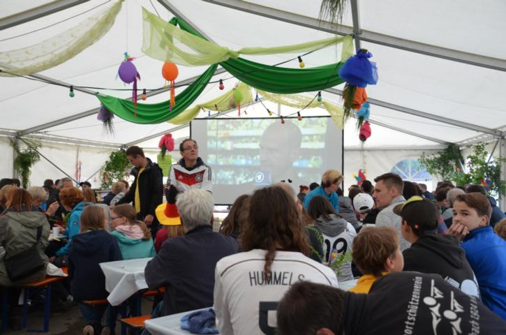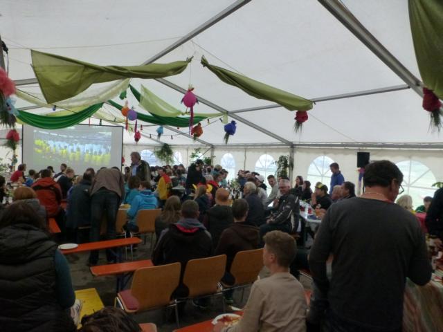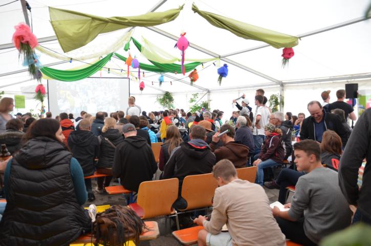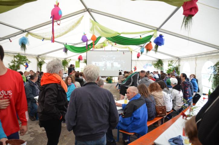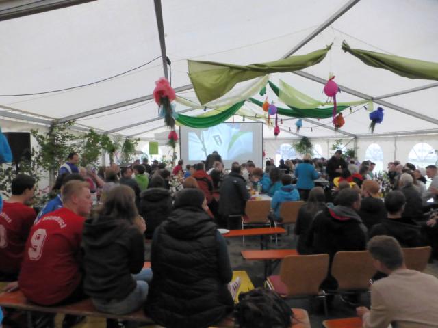 zu uns ins Festzelt vom Sommerfest zu holen.