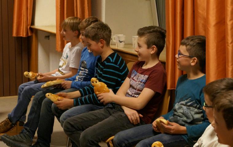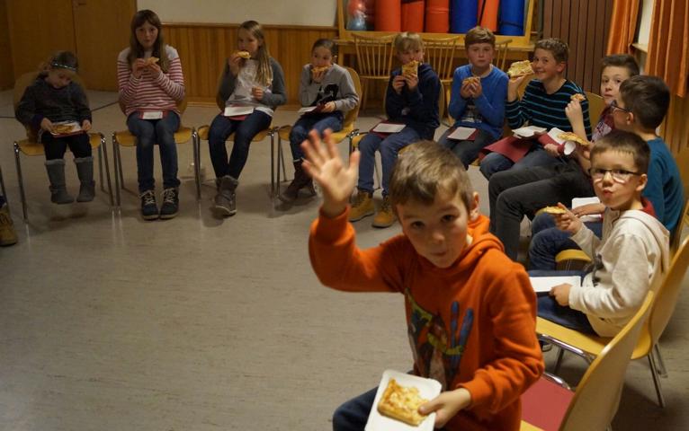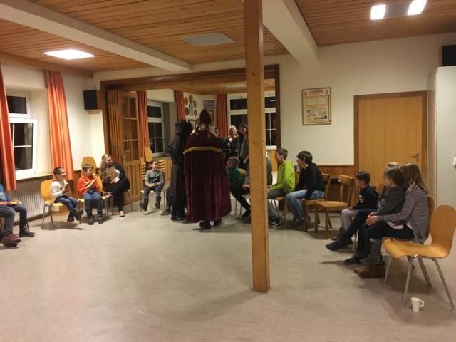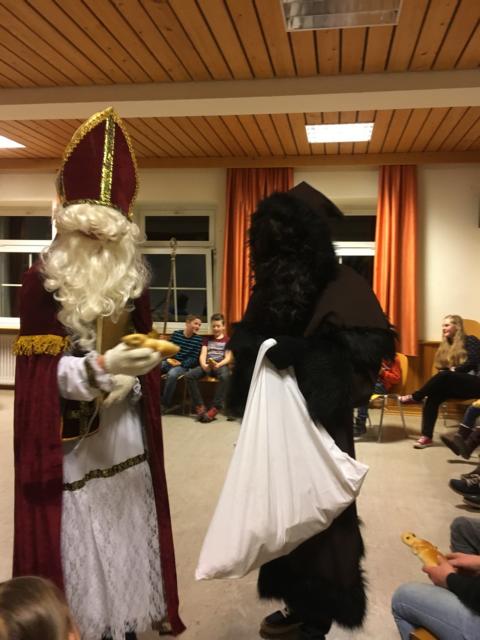 Um 18 Uhr gab es für alle Pizza und danach kam der Nikolaus mit Knecht Ruprecht vorbei. Er brachte allen einen Weckmann mit und die Krabbelsack-Geschenke wurden verteilt. Um 19 Uhr war die Feier zu Ende und die Kinder wurden von ihren Eltern abgeholt. Wir glauben, es war ein gelungener Nachmittag an dem alle Spaß hatten.