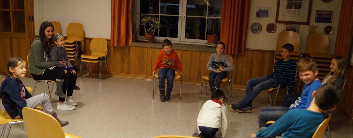 Gegen 17:00 Uhr kamen die Kinder. Nachdem alle da waren, spielten wir zwei Spiele gemeinsam, anschließend teilten wir uns in zwei Gruppen. Die jüngeren spielten Obstsalat und armer, armer schwarzer Kater. Die älteren Montagsmaler.