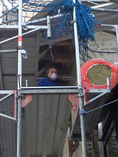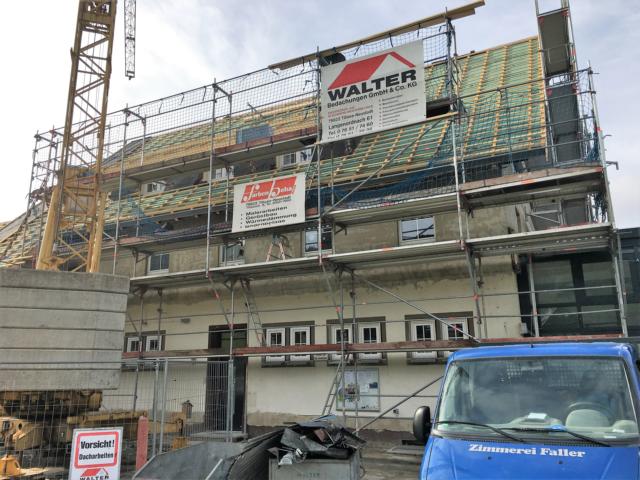 Nachdem Anfang Oktober mit gewaltiger Man-Power die alte Aussenhülle und der ehemalige Schindelanschlag entfernt wurde, durften sich die Ehrenamtler erstmal ein Wochenende Pause an der Baustelle gönnen. Während dessen konnten die Fa. Walter auf dem Dach und die Fa. Weissmann an der Wand, sichtbare Fortschritte machen.