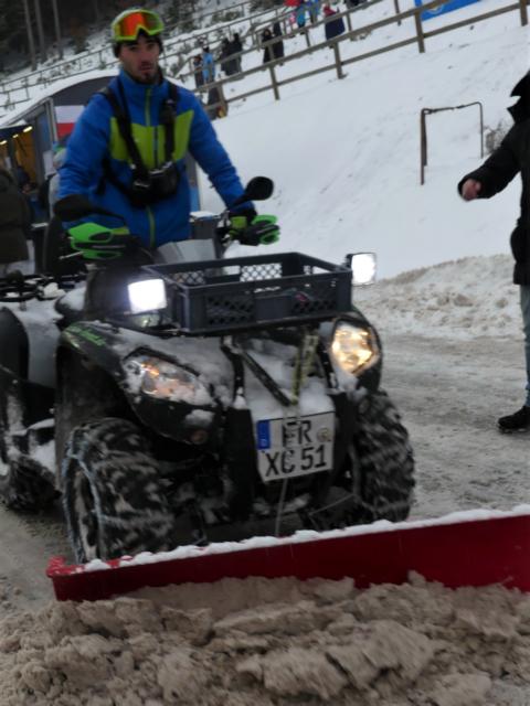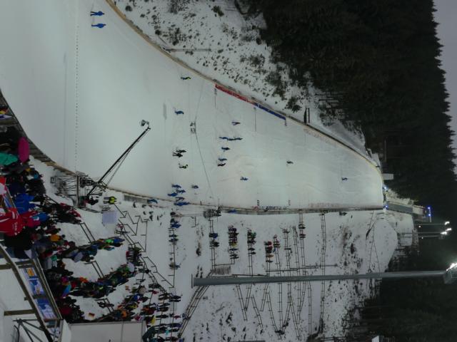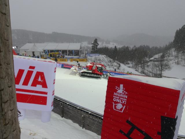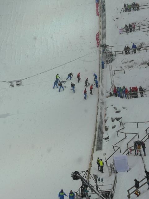 Heftiger Schneefall forderte die Könner des Schanzenteams heraus, aber sie liessen es nicht zu, dass der Schnee ihnen ihren Einzelwettkampf in Gefahr bringen könnte. Einzig dem Wind waren sie ausgeliefert, doch die Ausdauer der Jury wurde am Ende belohnt und so konnte der Wettkampf zumindest mit einem Durchgang absolviert werden.