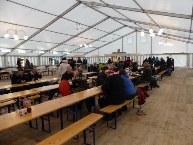 Auch unser Zelt bot immer wieder Gelegenheit, bei leckerem Essen, Kaffee und Kuchen sich aufzuwärmen.
