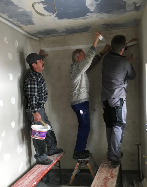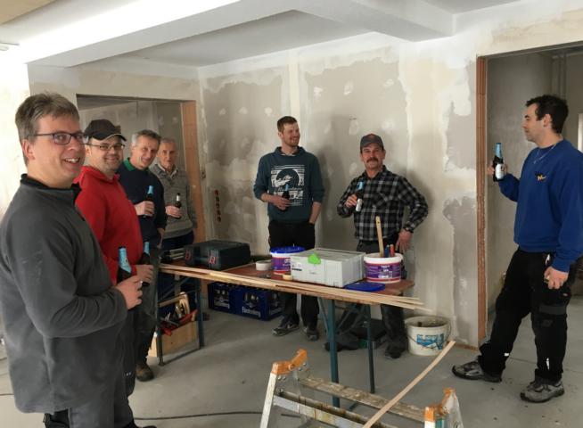 Neben der Decke galt es noch für den Gipser verschiedenste Vorarbeiten zu machen, so dass wir heute mit zweit Arbeitstrupps eine sehr gute Leistung und trotzdem viel Spaß dabei hatten.