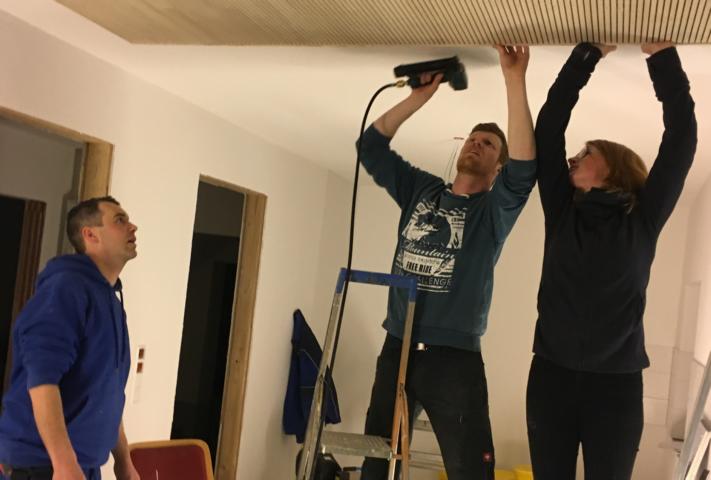 An dieser Stelle ein herzliches Dankeschön an Markus Faller, der die Montage für die Schallschutzdecke verantwortete und mit seinem Werk sehr zufrieden sein darf. Herzlichen Dank allen Helfern der letzten Wochen.