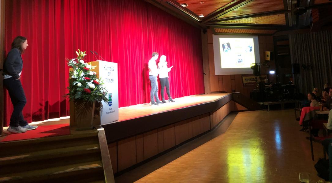 Zu ersten Mal wurde der Abend des Sports mit vielen Bildern und Filmen untermalt, was die vielschichtigen Sportarten in unseren Vereinen gut wiedergab. Ebenfalls neu war in diesem Jahr, dass die Wahl des Sportler des Jahres als "New-Comer des Jahres" ausgetragen wurde. Neustadts beliebte Welt-, Europa- und Deutsche-Meister Annika Knoll, Simon Stiebjahn übernahmen das in einer mit aufwändigen Filmen untermalten Präsentation der nominierten Jungsportler Alina Herr, Felix Gollrad und Luca Fesenmeier. Von den drei jungen Sportlern hatte unsere Ramona Straub tolle, interessante Videos aufgezeichnet, die im Saal vorgeführt wurden. So konnten sich alle Anwesenden ein gutes Bild von den Leistungen der Drei machen.