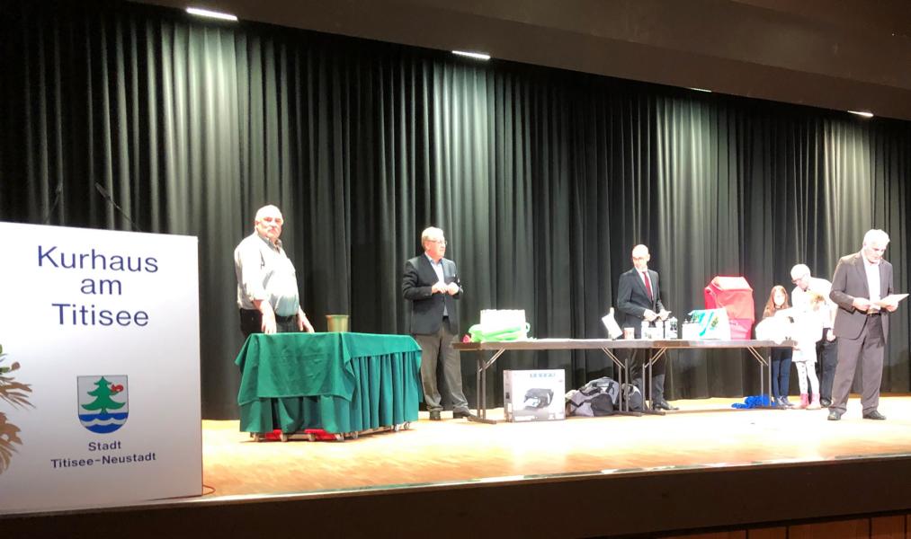 Mit einem abwechslungsreichen Programm lud die Arbeitsgemeinschaft der 20 sporttreibenden Vereine in Titisee-Neustadt, am 16.11.2019 zum diesjährigen Abend des Sports in das Kurhaus Titisee ein. In diesem Jahr ist unser Vorstand Andreas Heizmann ARGE-Vorsitzender und freute sich einen gut gefüllten Saal begrüssen zu dürfen. Zahlreiche Sportbegeisterte aus Titisee-Neustadt und auch unseres Skiclubs sind ins Kurhaus gekommen, um die Leistungen der Sportler zu würdigen. Einen ihrer ersten öffentlichen Auftritte hatte Neubürgermeisterin Meike Folkerts, die als ehem. Leistungssportlerin die richtigen Worte für ihre Ansprache fand.