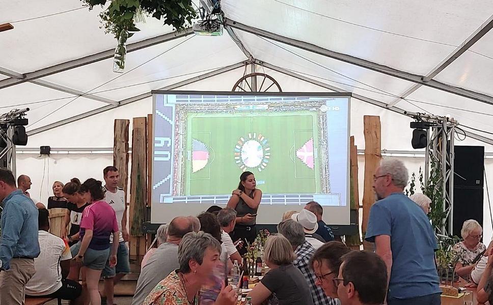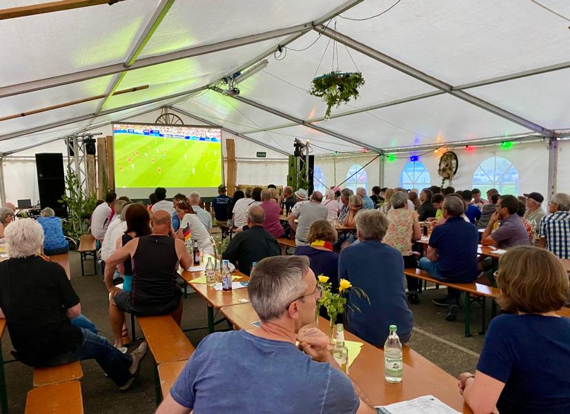 … das Deutschlandspiel um 21 Uhr. Die Leinwand wurde hochgekurbelt, der Beamer eingeschaltet und gemeinsam haben wir im Zelt das spannende Achtelfinale verfolgt und uns natürlich über den Sieg der Deutschen Mannschaft gefreut. Besonders happy waren wir vom Skiclub, dass in Langenordnach die abgekündigten starken Unwetter ausgeblieben sind.