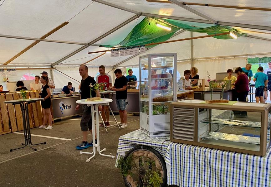Nachdem seit Dienstag eine große Schar an Helfer*innen den Parkplatz des Bürgerhauses in ein Festgelände mit schön dekoriertem Zelt verwandelt haben wurde