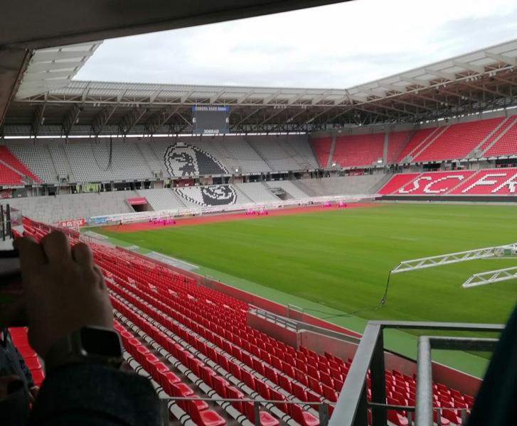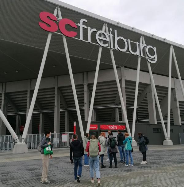 Auf der Fahrt nach Freiburg wurde es heller und trockener! Im Europaparkstadion angekommen hat uns Gerd auf eine Reise durch das SC-Stadion mitgenommen und er wusste einiges in aller Ausführlichkeit zu erzählen und zu sagen.