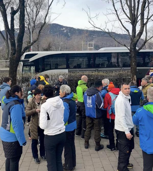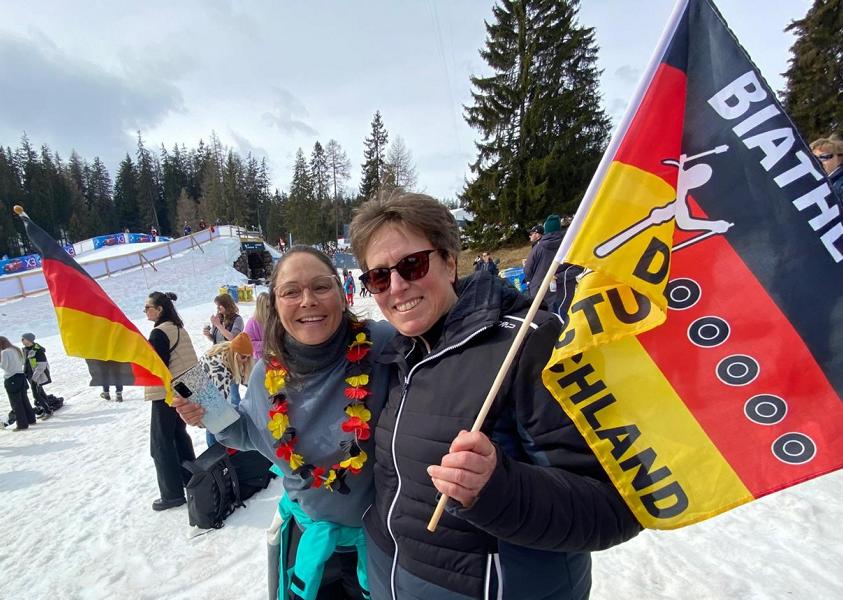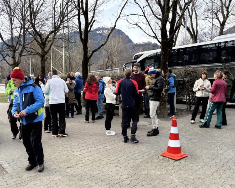 Es war alles bestens durch Daniele Dura organisiert. Das Busunternehmen Steiert hat ca. 50 Mitglieder und Freunde des SCL in die Schweiz gefahren. Unterwegs gab es einen gemütlichen Kaffee & Zopf/ Brezel Stop. Nach ca. 4 h Fahrtzeit sind wir dann am Biathlon Gelände angekommen. Dank Insider Tipps der Eltern des Olympioniken Charly und Friederike Doll konnten sich alle gute Plätze an der Wettkampfstrecke sichern, um möglichst nah an den Sportlern zu sein und auch einen guten Blick auf die Schießeinlagen zu haben.