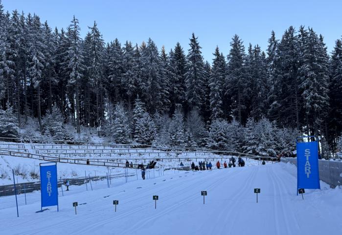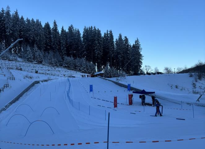 Im Auslauf der großen Schanze haben unsere Helfer einen kurzen aber abwechslungsreichen Technik-Parcour auf die Beine gestellt. Dynamisch und kreativ haben wir dann kurzerhand die einzelnen Klassen in Startgruppen von 4-6 Läufer|innen aufgeteilt, damit es auf dem Rundkurs nicht zu eng wurde. Über Nacht viel dann tatsächlich auch noch Neuschnee vom Himmel, so dass die Landschaft nun auch weit über den Auslauf hinaus in winterlichem Weiß erstrahlte. Und es war nicht nur weiß sondern auch noch wie es sich für einen richtigen Winter gehört, eisig kalt.
