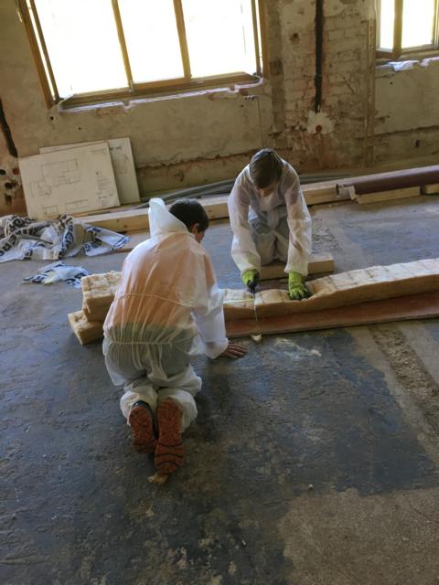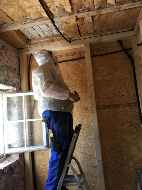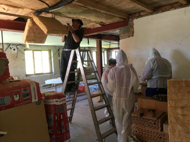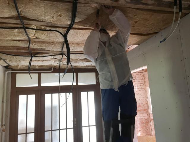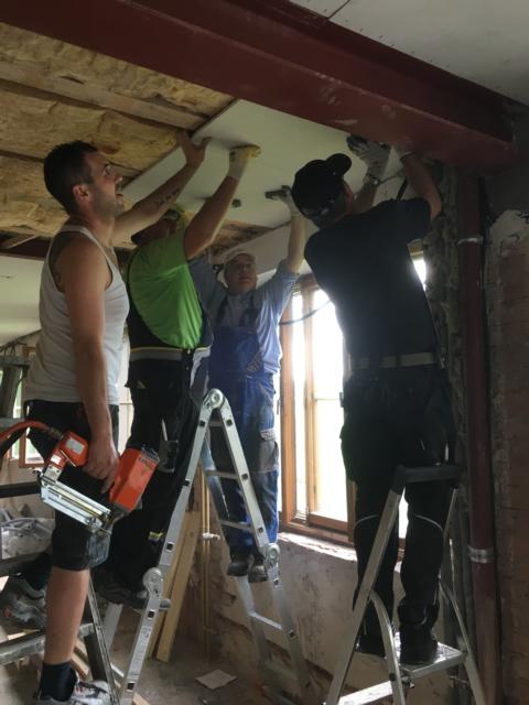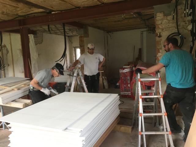 In den letzten beiden Wochen konnten wir nun mit der Deckendämmung und der Montage der Brandschutzdecke beginnen.