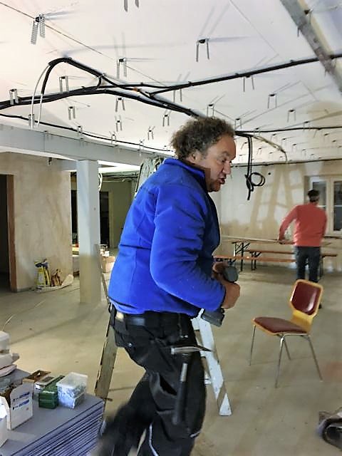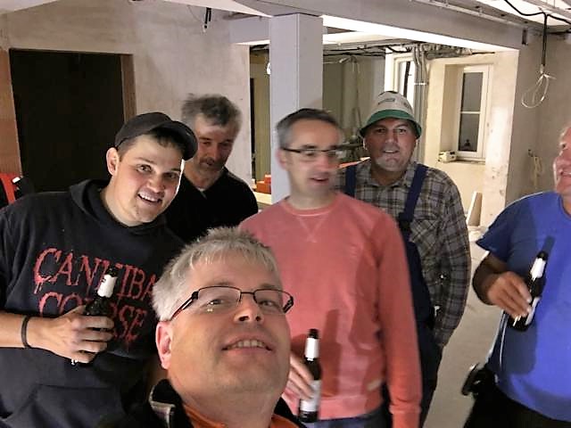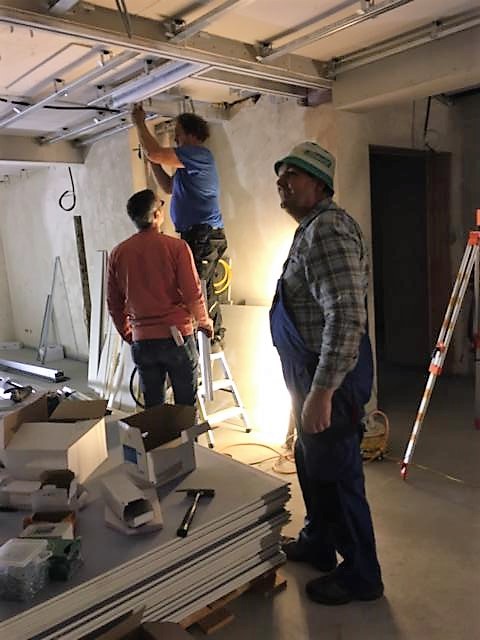 Für die nicht so geübten Handwerker ist das Arbeiten über Kopf schon auch etwas anstrengend aber bei guter Arhmosphäre und Stimmung im Team ist dies sehr gut auszuhalten.