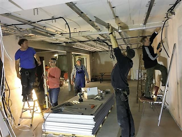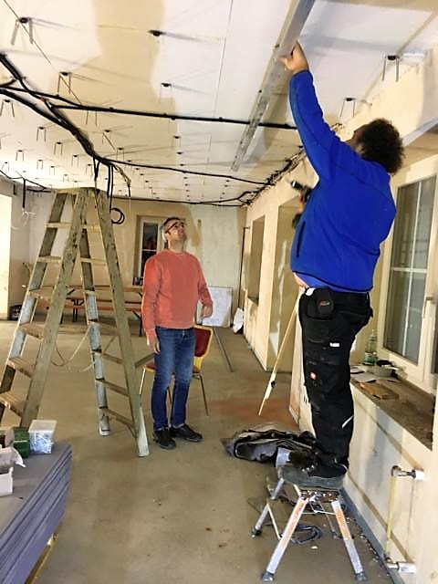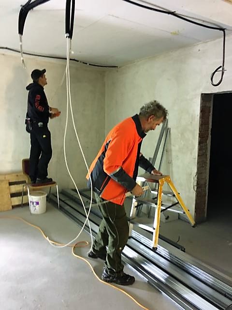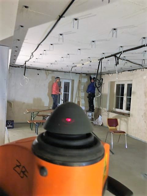 In dieser Woche 02.11 und 04.11 haben wir begonnen im neuen Ornemer Bürgersaal die Halterungen und Metallschienen für die zukünftige Schallschluckdecke zu montieren.