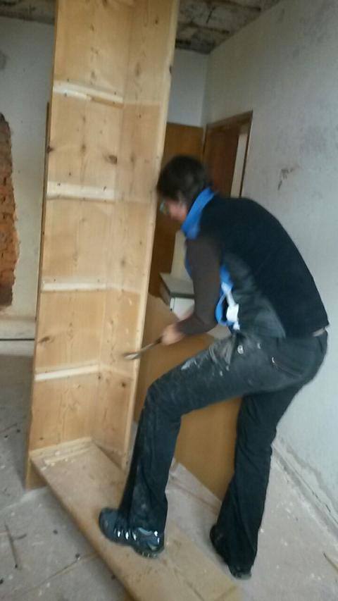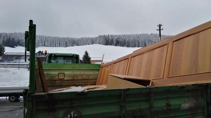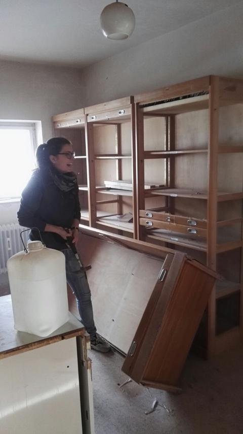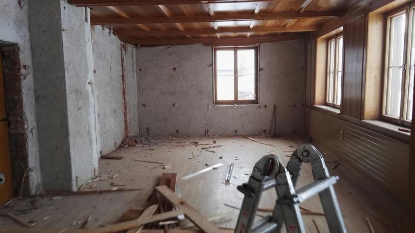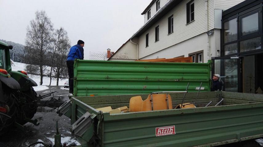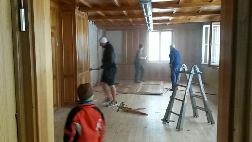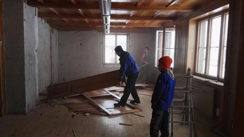 Mit viel Elan und grobem Werkzeug ging es den Innereien der ehem. Amts-, Büro- und Archivräumen an den Kragen. Alles wurde fachgerecht auf verschiedene Anhänger sortiert und bald waren die Räume in einem rohbauähnlichen Zustand.